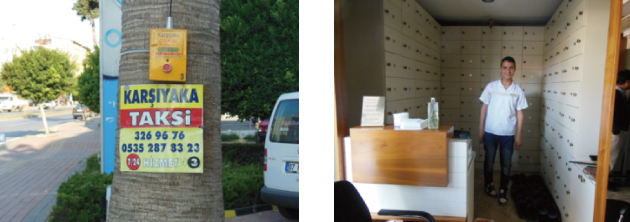 アンタルヤの街中のハマムを訪ねた。アンタルヤでは比較的設備も大きく充実している人気店とのこと。ハマムはこれまで歴史的に「社交場」としての役割も果たしてきた。結婚式や何か催事のあとに家族や身内・親戚、友人などが集う場所で、今もそういった使われ方もあるようだ。女性用のハマムでは、嫁入り前の娘さんが周りのおばさんたちに「身体検査」をされる場でもあったようで、一般大衆向けの街のハマムは人間的な情緒と哀愁が漂っていて、日本の古き良き銭湯とかぶる。下の写真は施設の入り口で、左側が女性、右側が男性となっている。建物を出た直ぐのところにタクシーを呼ぶ無線機のようなものが木に縛り付けられている。入り口を入ったところの受付にも同じタクシーの呼び出し用機器がおいてあった。