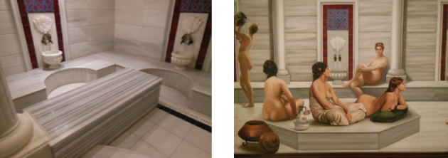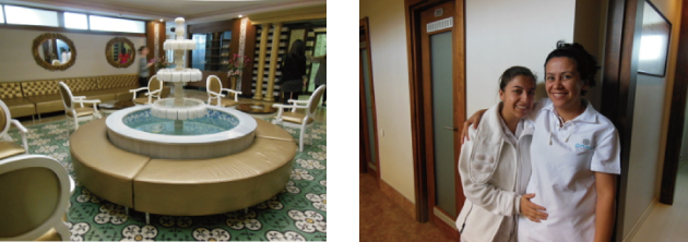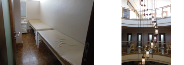 確かに待ち合い室というかロビー、フロアー毎に社交場と呼べるスペースが確保されている。建物を中央が一部吹き抜けになっていてゆったりした空間を演出している。ハマムで働く女性スタッフだが、カメラを向けると恥ずかしそうにはするのだが、しっかりと収まってくれる。
