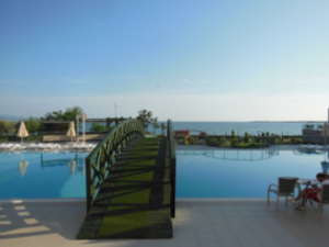 この後向かったのは、この日の宿となるAdrina Hotel De Luxe Health & Spaである。エデレミットに位置する5つ星リゾートで、北エーゲ海の海岸を望むことができる。部屋の外にはプールや公園、海も目の前で朝の散歩には最高のロケーション。エーゲ海に沈む夕日と登る朝日がみられる。今回、ゆっくりできる時間がなく、ホテル内の施設が利用できなかったのは返す返す残念であった。